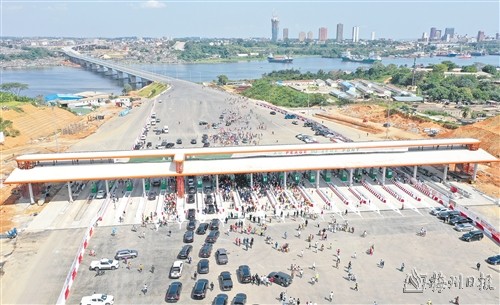 图为1月10日航拍的科特迪瓦阿比让四桥项目。(新华社发)