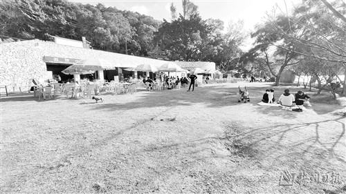 ▲商家都在摆放区域规范经营,市民可以正常在草坪上野餐露营。(陈坚平 摄)