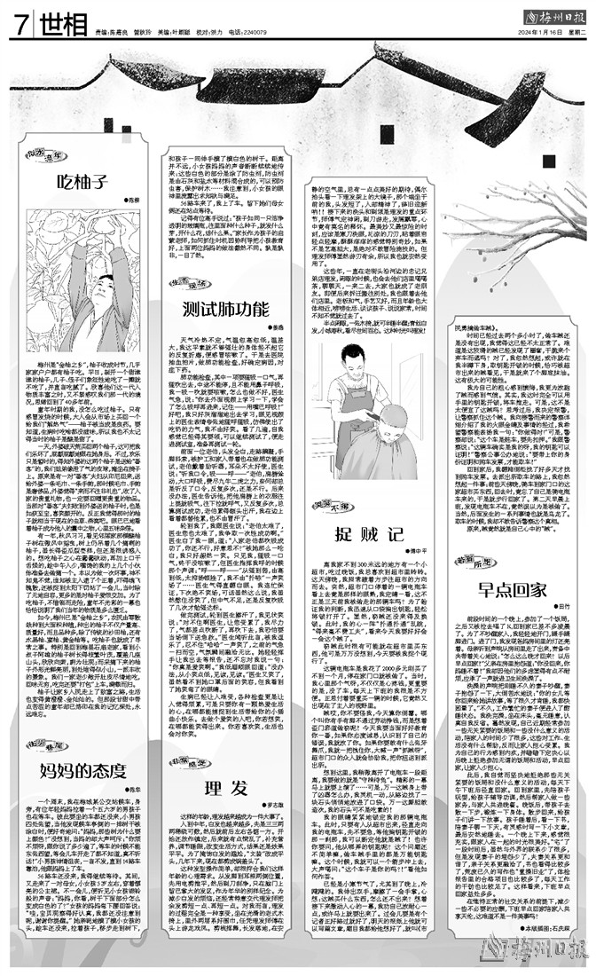 如今,梅州已是“金柚之乡”,农民由零散栽种到大面积种植,种出的柚子不仅产量高、质量好,而且品种多,除了传统的沙田柚,还有水晶柚、蜜柚、黄金柚等。吃柚子也就成了寻常之事。特别是回到梅县石扇老家,看到小叔子阿雄的柚子树长得枝繁叶茂,覆盖几座山头,欣欣向荣,蔚为壮观;而采摘下来的柚子外形光鲜亮丽,到处堆得似小山,一派丰收的景象。我们一家老少敞开肚皮尽情地吃,回味无穷,吃完还要“打包”上车,满载而归。