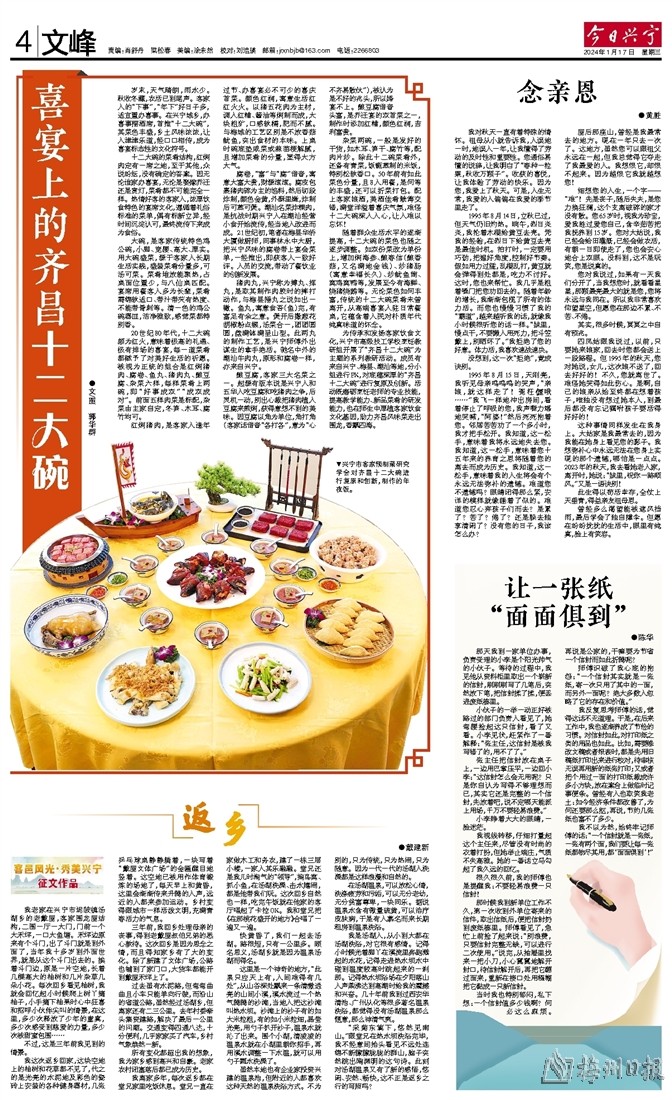 岁末,天气晴朗,雨水少。秋收冬藏,农活已到尾声。客家人的“下事”,“年下”好日子多,适宜置办喜事。在兴宁城乡,办喜事摆酒席,首推“十二大碗”,其菜色丰盛,乡土风味浓浓,让人津津乐道,经口口相传,成为喜宴标志性的文化符号。