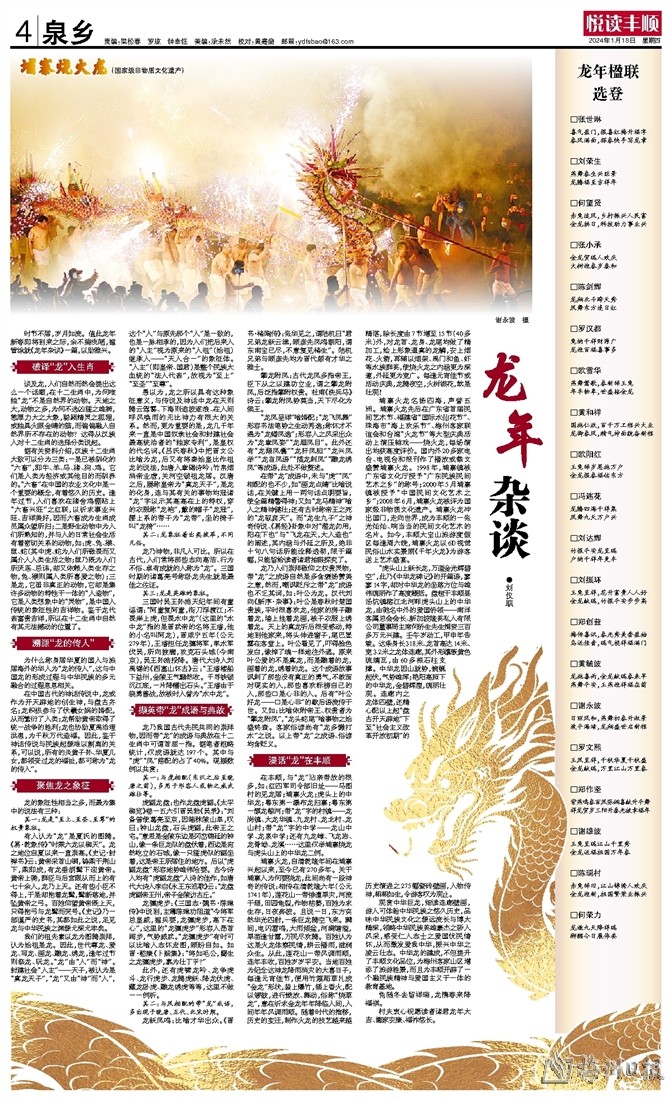 时节不居,岁月如流。值此龙年新春即将到来之际,余不揣浅陋,握管涂就《龙年杂谈》一篇,以助雅兴。