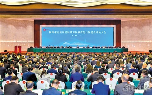 2023年2月2日,全市高质量发展暨苏区融湾先行区建设动员大会在世界客商中心举行。会议贯彻落实全省高质量发展大会精神,动员全市上下立即进入状态、迅速行动起来,全力建设苏区融湾先行区,全身心投入到梅州高质量发展的生动实践。