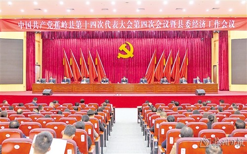 本报讯 近日,中国共产党蕉岭县第十四次代表大会第四次会议暨县委经济工作会议在蕉城召开(如图,徐志宝摄)。会议坚持以习近平新时代中国特色社会主义思想为指导,全面贯彻落实党的二十大、二十届二中全会和中央经济工作会议、中央农村工作会议精神,深入学习贯彻习近平总书记视察广东重要讲话、重要指示精神,认真落实省委十三届四次全会暨省委经济工作会议和市委八届八次全会暨市委经济工作会议精神,总结2023年工作,分析研判形势,部署2024年工作,动员全县上下争先创优、实干担当,以头号力度打造“百千万工程”典型县,加快建设梅州苏区融湾先行区综合示范窗口,奋力在高质量发展、城乡区域协调发展、老区苏区振兴发展中走在前列。县委常委会主持会议。