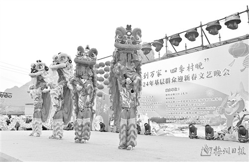 当日,广西柳州市柳江区进德镇举办的“春到万家·四季村晚”活动在该镇乐山村长安屯热闹开演。由乡镇志愿者、村民自编自导自演的节目和互动游戏轮番登场,村民在欢乐喜庆的气氛中迎接新春佳节。(新华社发)
