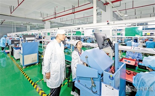 沿着笔直宽阔的工业大道,来到位于叶塘镇的广州天河(兴宁)产业转移工业园,道路两旁厂房林立、绿化优美。在辰浩医疗科技(广东)有限公司(以下简称“辰浩医疗”)组装车间内,工人庄兰苑和工友们正熟练组装着助听器。2022年,辰浩医疗搬迁至如今的新建厂房,家住龙田镇的庄兰苑也如愿获得了一份离家更近、待遇更好的工作。