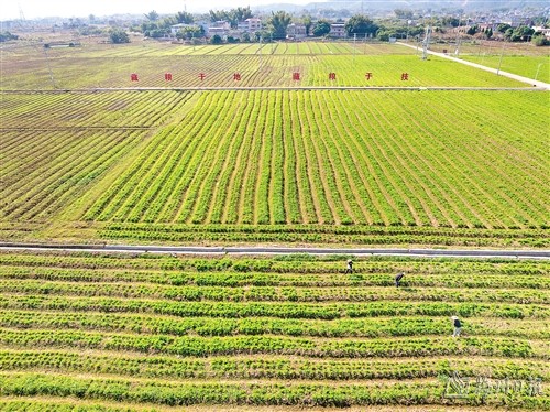 暖冬腊月,温暖的阳光遍洒大地,叶塘镇彭陂村420亩连片冬种蔬菜基地一马平川、满目苍绿,一垄垄芥菜茁壮生长,新修水渠整齐分布。这片连片规整的土地,由当地400多户人家流转,经过统一规划、土地平整、道路拓宽、水渠维修后,不仅更好耕种了,亩均生产效益也得到有效提高。