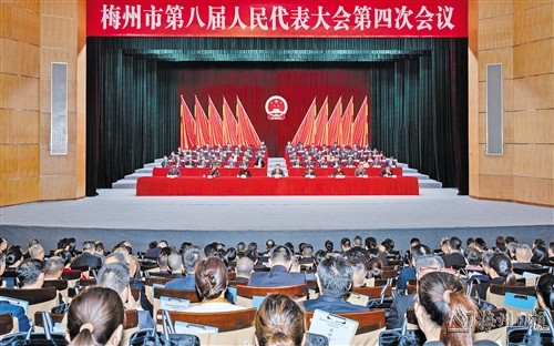 本报讯 (记者朱庆强 特约记者辜昀玥)2月1日上午,梅州市第八届人民代表大会第四次会议在梅城客家艺术中心举行第三次全体会议,并在圆满完成各项议程后胜利闭幕。市委书记、市人大常委会主任、大会主席团常务主席马正勇,市委副书记、市长王晖,市政协主席杨朝晖,市委副书记陈金銮出席会议并在主席台就座。