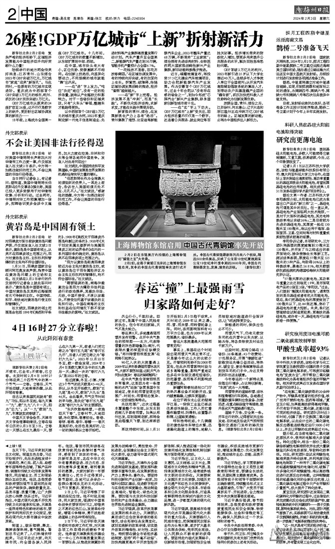 中国天文学会会员、天津市天文学会理事杨婧说,立春在每年公历的2月3日至5日。立春这一天要么在五九最后一天,要么在六九第一天,前者人们把它称之为“春打五九尾”或“春打五九尽”,后者人们把它称之为“春打六九头”。2023年12月22日冬至,数一数会发现,2024年2月4日是数九寒天当中的五九最后一天;最近一次的“春打六九头”是2022年的立春。