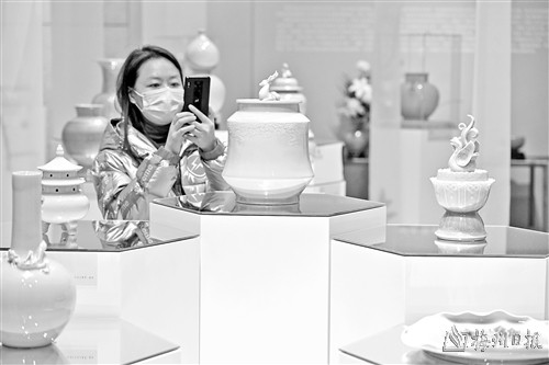 当日,“不灭窑火——当代龙泉青瓷精品展”在中国工艺美术馆(中国非物质文化遗产馆)开展。本次展览共展出145名工艺美术家、非遗传承人的近200件作品,集中展示浙江龙泉青瓷文化。