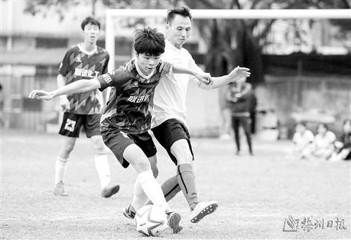 图为莆田村与龙岗村比赛中,双方运动员激烈拼抢。(林翔 摄)
