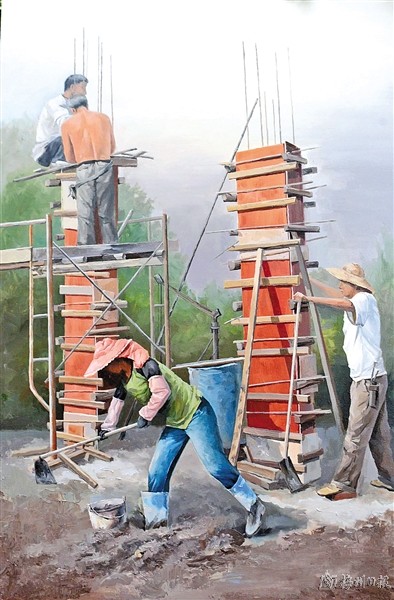 | 一等奖:刘顺《建设者》(丙烯 , 120×80cm) |