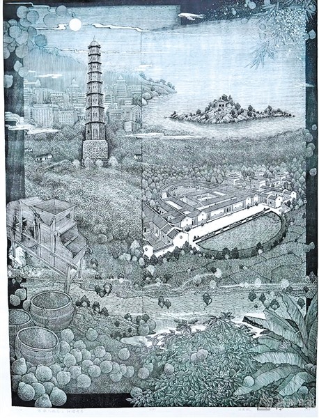 | 一等奖: 陈苑旋 《客都风物志之和谐齐昌》( 版画 ,90×120cm) |