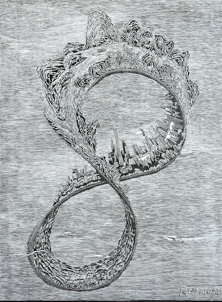 | 三等奖:邓威 《数往知来》 (部分, 版画,120×45cm) |