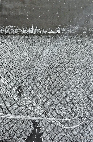 | 二等奖:杨颂阳《中国梦——绿色崛起》(版画,80×120cm) |