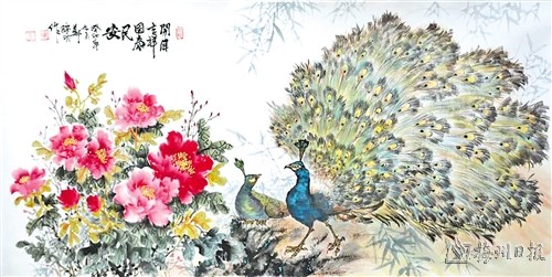 | 三等奖:郑锦明 《开屏吉祥国泰民安》 (国画,138×68cm) |