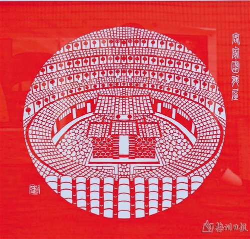 | 三等奖:刘新 《客家围龙屋》 (剪纸 ,50×50cm) |