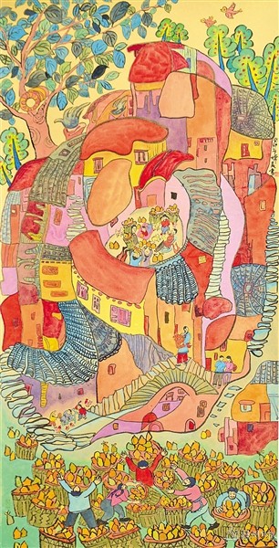 | 三等奖:陈嫦美 《幸福家园》 ( 农民画,138×68cm) |
