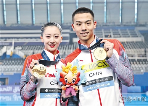 2024多哈游泳世锦赛10日结束了花样游泳的全部比赛,随着程文涛/石浩玙在混双自由自选决赛中成功卫冕,中国队以7金1银1铜创造队史世锦赛最佳战绩。
