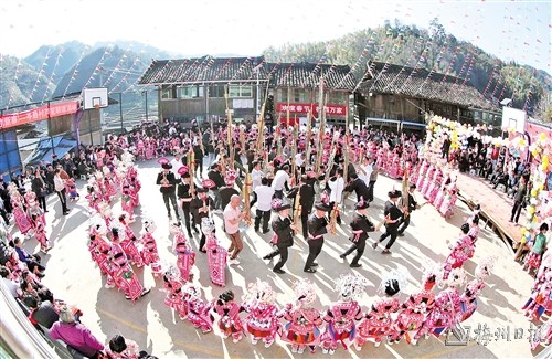 在贵州省榕江县朗洞镇定向村,苗族群众吹芦笙、跳芦笙舞。(图片均为新华社发)