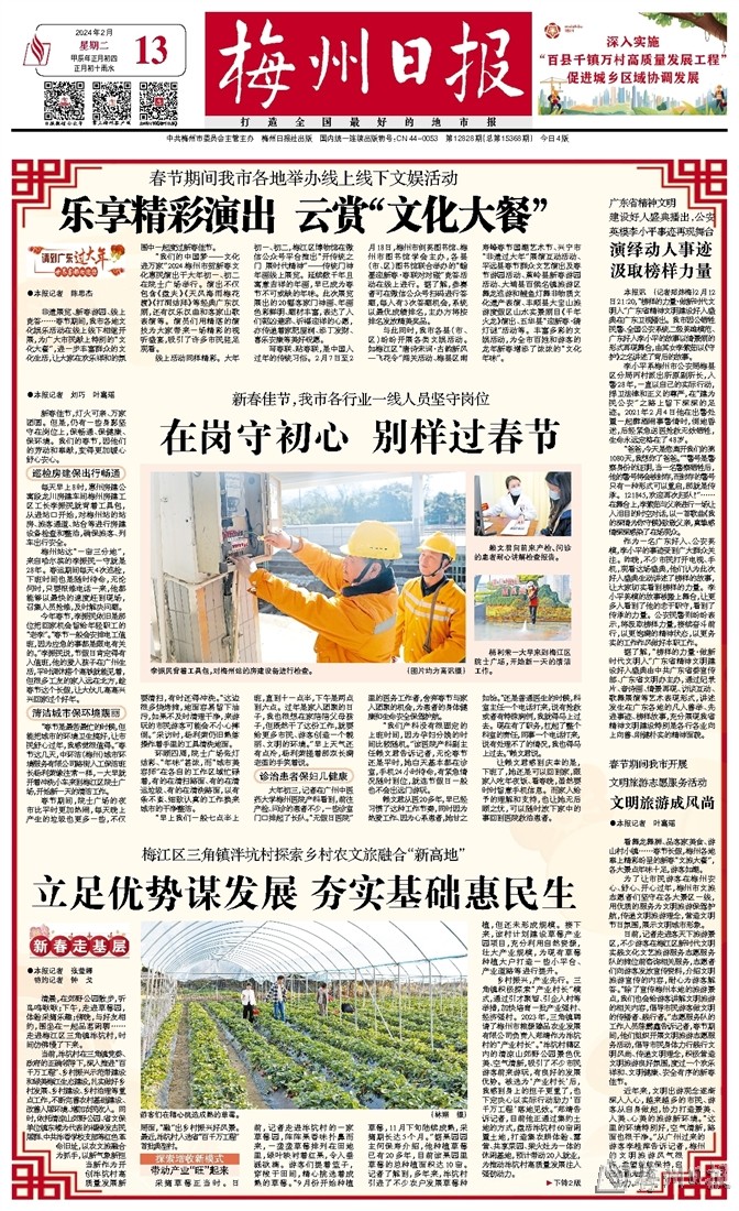 “我们的中国梦——文化进万家”2024梅州市贺新春文化惠民演出于大年初一、初二在院士广场举行。演出不仅包含《盘夫》《天风海雨梅花渡》《打洞结拜》等经典广东汉剧,还有汉乐汉曲和客家山歌表演等。演员们用精湛的演技为大家带来一场精彩的视听盛宴,吸引了许多市民驻足观看。
