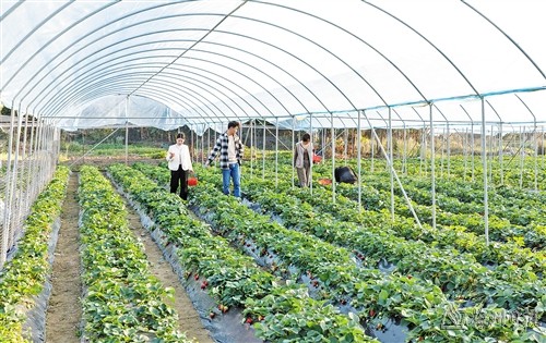 采摘草莓正当时。日前,记者走进泮坑村的一家草莓园,阵阵果香味扑鼻而来,一垄垄草莓排列在田地里,绿叶映衬着红果,令人垂涎欲滴。游客们提着篮子,穿梭于田间,精心挑选着成熟的草莓。“9月份开始种植草莓,11月下旬陆续成熟,采摘期长达5个月。”据果园园主何保寿介绍,他种植草莓已有20多年,目前该果园里草莓的总种植面积达10亩。记者了解到,多年来,泮坑村引进了不少农户发展草莓种植,但还未形成规模。接下来,该村计划建设草莓产业园项目,充分利用自然资源,壮大产业规模,为现有草莓种植大户打造一些小平台、产业道路等进行提升。