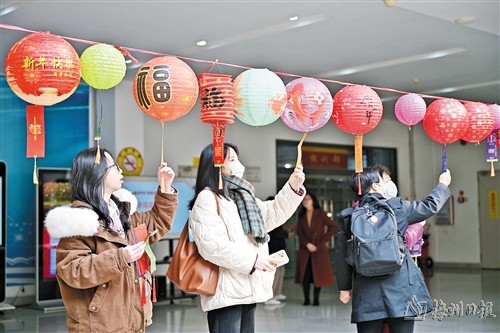 在少儿活动区,记者看到,不少家长携带着孩子穿梭在各排书架前,认真寻找夹在书中的五福卡,并到服务台参与“滚滚乐”阅读抽奖活动。“为丰富广大读者的文化生活,营造文明和谐、喜庆祥和的春节传统文化氛围,我们江南购书中心和梅县四阅书店于春节期间开展了‘金龙贺岁’新春游园活动。”梅州新华书店总经理助理兼阅读服务中心经理罗宝君说,新春游园活动从 2月3日持续至13日,包含了新年打卡、视频送祝福、送春晖、制作非遗手工灯笼、新春集福、新春拓印等活动,让广大市民在书店里邂逅年味和诗意,在欢乐中感受传统文化的魅力。