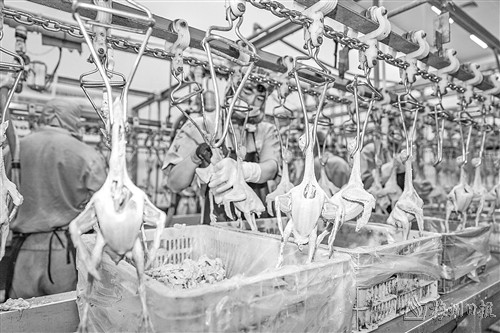 在金绿公司的标准化流水线车间里,乳鸽经过十几道工序的处理,由活禽变为一箱箱冰鲜肉鸽,发往全国热门商超及餐饮企业。“我们整条流水线都有严格标准,从产地到餐桌都全力保障消费者的食品安全。”陈伟波表示,这正得益于该公司一直致力于对肉鸽精深加工、冰鲜鸽保鲜等技术的研发。