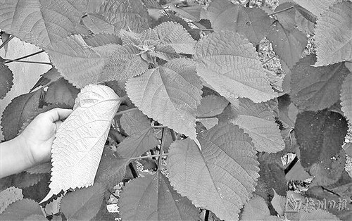 用苎麻织成的白布经靛青漂染(蒸煮),变成了蓝色的布料。