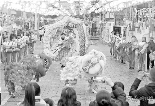 2月22日,市民在浙江省湖州市德清县阜溪街道三桥社区的元宵灯会上观看舞龙、舞狮表演。近日,各地举行丰富多彩的活动,喜迎元宵节。(新华社发)