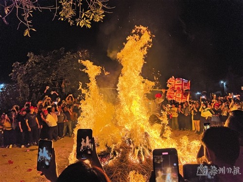 本报讯 (记者王锐)2月21日晚,丰顺县汤南镇东方村举行了一项热烈壮观、振奋人心的民俗活动——“跳火堆”,吸引当地和周边县镇众多群众和各地摄影爱好者前来赏民俗。