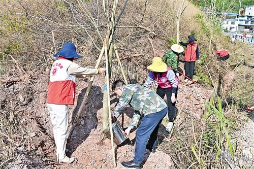 长田镇计划围绕各村村口、高速路口等重点区域植树增绿,打造“七个一”的绿美乡村新画卷。春节前后已种植树苗320株,并安排了多名护绿管理员,确保树苗存活率。“自己的汗水洒在家乡的土地上,还能体验种树的乐趣,我感到很开心。”返乡大学生杜晓婷告诉记者,她在线上i志愿平台得知家乡有植树活动后,第一时间报名参加。她表示,能够为家乡绿化工作贡献一份力量,是一件很有意义的事。