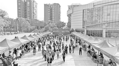 当天上午,招聘现场人潮涌动,求职者络绎不绝,部分招聘摊前排起长龙。广州立白(番禺)有限公司就是其中之一。“这次公司主要招聘质检员、码垛工、包装操作工等5个工种,共招聘80至100人。”据该公司招聘专员谢红介绍,该公司位于番禺,可为求职者提供了住宿、伙食补贴、工会福利、技能培训、文娱活动等多项福利。“目前来咨询面试的人还挺多,到番禺就业的意向度也很高,应该能顺利完成招聘任务。”谢红笑着说。