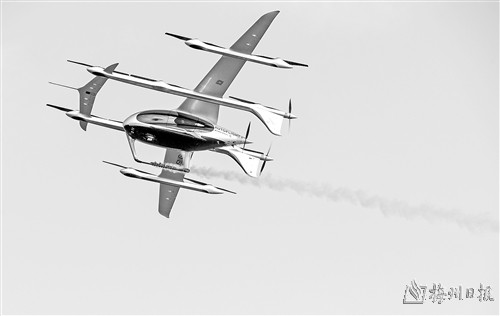 图为5座eVTOL(电动垂直起降)航空器盛世龙在深圳蛇口邮轮母港附近海域上空飞行。