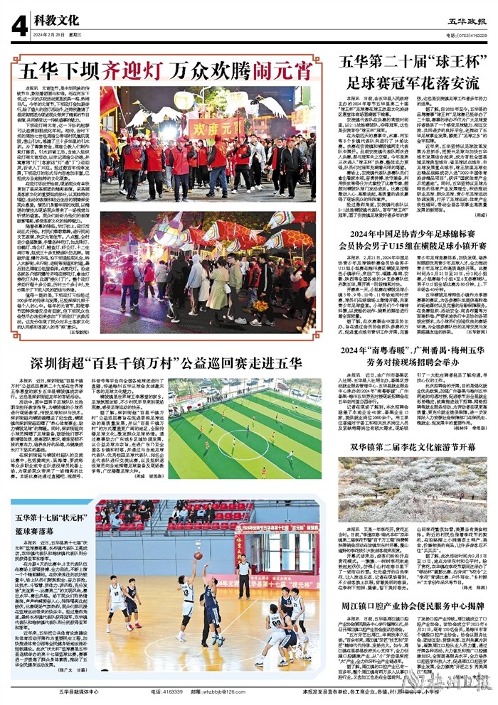 本报讯 日前,由五华县人民政府主办的2024年春节五华县第二十届“球王杯”足球赛在球王故里文化旅游区惠堂体育场圆满落下帷幕。