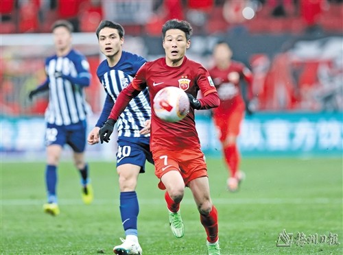 第75分钟,奥斯卡在禁区左侧送出精准传中,武磊在门前头球攻门得手,上海海港反超比分。补时阶段,王燊超头球得分,上海海港3∶1战胜武汉三镇,迎来赛季“开门红”。
