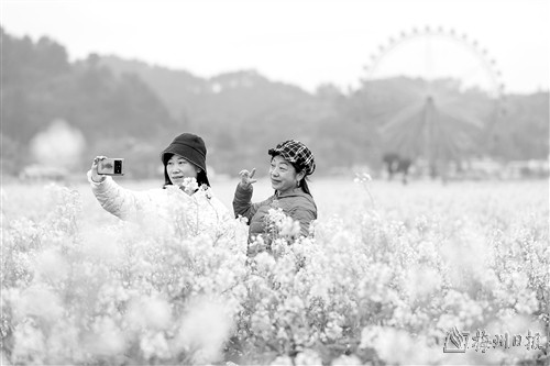 近日,游客在贵州省贵定县盘江镇“金海雪山”景区油菜花田里拍照。