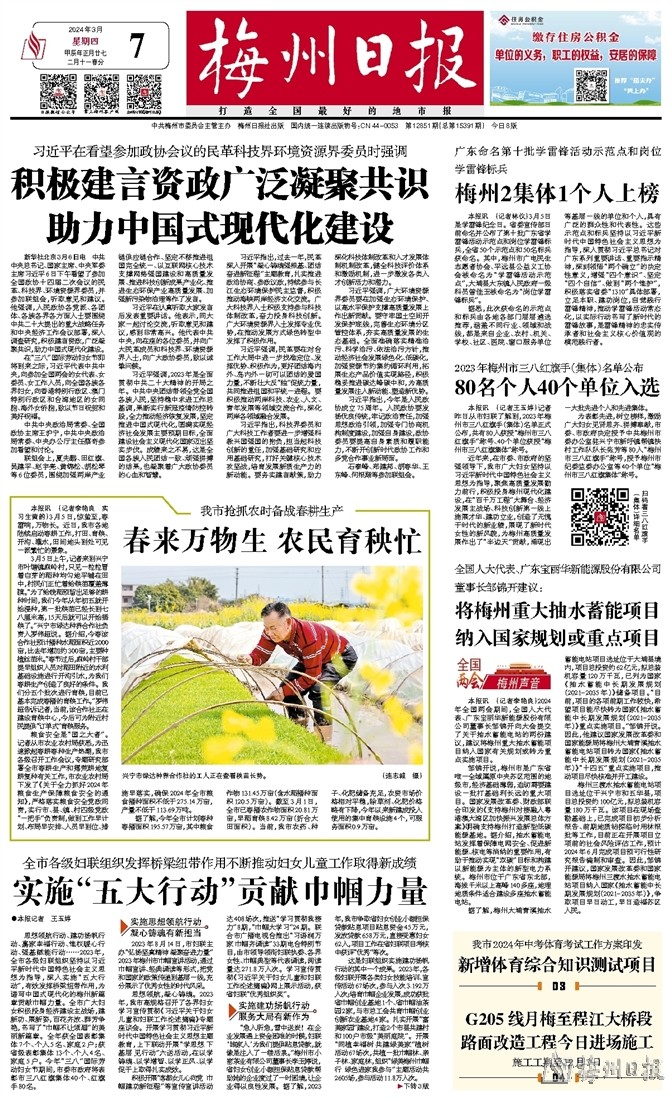 思想领航行动、建功扬帆行动、嘉家幸福行动、维权暖心行动、强基赋能行动……2023年,全市各级妇联组织坚持以习近平新时代中国特色社会主义思想为指导,深入实施“五大行动”,有效发挥桥梁纽带作用,为谱写中国式现代化的梅州新篇章贡献巾帼力量。全市广大妇女积极投身经济建设主战场,建新功、展新姿,百花齐放、群芳争艳,书写了“巾帼不让须眉”的美丽新篇章。全年获全国表彰集体7个、个人5名、家庭2户;获省级表彰集体13个、个人4名、家庭5户。今年“三八”国际劳动妇女节期间,市委市政府将表彰市三八红旗集体40个、红旗手80名。
