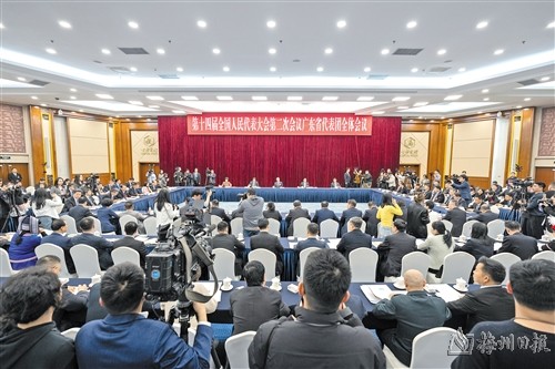 本报讯 3月7日上午,十四届全国人大二次会议广东省代表团在住地首都宾馆举行全体会议,继续审议政府工作报告,审查计划报告和草案、预算报告和草案,并面向中外媒体开放,来自102家境内外媒体的225名记者到会旁听采访。在发言环节结束后,媒体记者对代表进行集体采访。大家纷纷举手,就实施“百县千镇万村高质量发展工程”、做强实体经济、建设粤港澳大湾区、巩固外贸基本盘、促进海洋经济高质量发展等关系广东当前和长远发展、社会各界关心关注的话题进行提问。黄坤明、王伟中、张虎、覃伟中、曾进泽等代表分别作了回答,从不同角度广泛深入介绍我省贯彻落实党的二十大精神和习近平总书记视察广东重要讲话、重要指示精神,推进高质量发展、现代化建设取得的新进展新成效。