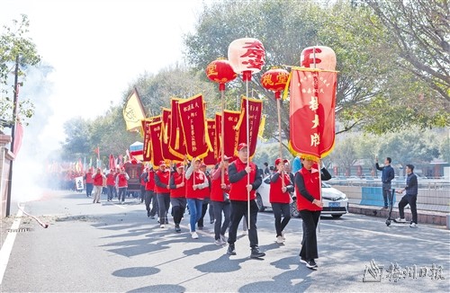 本报讯 (记者吴丽伶)3月8日上午,梅县区松源镇举行盛大的非遗民俗活动——“挂大牌”。这是松源王氏世世代代遵循“厚德传家”良好家风,每年一次于农历正月廿八举行的庆典活动。