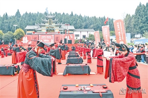 当日,重庆市潼南区民政局、四川省遂宁市民政局在重庆潼南区崇龛镇联合举办以“潼遂同行,情定花海”为主题的传统集体婚礼。来自潼南和遂宁的28对新人在亲朋好友和现场观众的见证下喜结良缘。