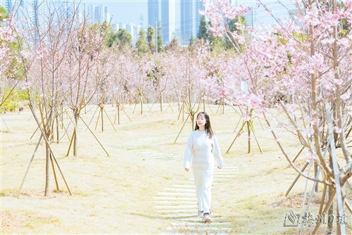 本报讯 春日里与樱花相遇,一曲“春之乐章”,在蕉岭县长潭镇李黄山若夫公园里悄然奏响。一棵棵樱花树迎着和煦春风,盈盈而立,粉妆玉砌,点缀了斑斓的春日。