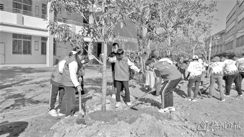 扶正树苗、培土、浇水、覆土……蕉岭中小学将“绿美校园”创建工作融入学生实践活动,上好绿美专题课,引导学生树立“我与小树共成长”理念,在广大青少年心中播下生态文明的种子, 创建“成长林”“红领巾林”等。