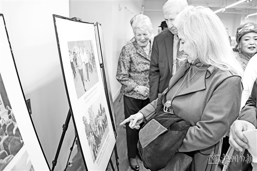3月11日,美中关系全国委员会副会长白莉娟在美国纽约参观“中美友好在广西”图片展。
