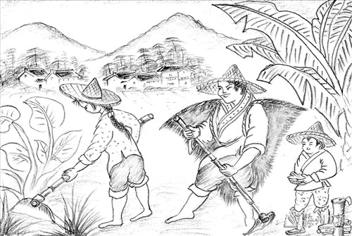 点评:秧苗蓬勃生长,田头地尾利用起来。种番薯、生姜、芋子、狗尾粟,这些食物足以果腹;也可种黄麻,这是织布的原料。春日唔得闲,不论雨和晴,蓑衣并笠麻,日日要出门!