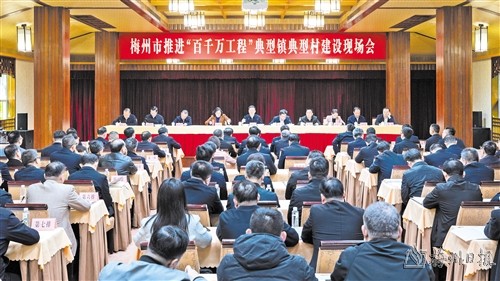 省委第三巡视组有关负责同志;市委、市人大常委会、市政府、市政协相关领导同志;各县(市、区)党政主要负责同志,“百千万工程”指挥部办公室主任、专职副主任,典型镇党委主要负责同志、典型村所在镇(街道)党(工)委主要负责同志、典型村党组织书记,市委有关部门、市直有关单位和中央、省属驻梅有关单位主要负责同志参加会议。