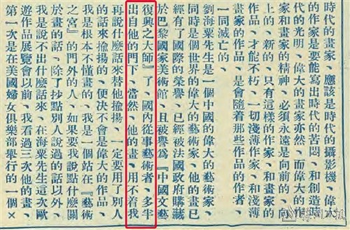 根据曾今可撰写的文章《从艺术说到刘海粟与徐悲鸿》一文,(曾今可·从艺术说到刘海粟与徐悲鸿[J].转引自新时代,1933(3)-5、6:7.)可知其起因是他应刘海粟之邀请发表了《刘海粟欧游作品展览会-序》。(曾今可·从艺术说到刘海粟与徐悲鸿[J].转引自新时代,1933(3)-3:7-9.)曾今可在称赞“刘海粟先生是一个中国的伟大的艺术家,同时是个世界的伟大的艺术家……国内名画家如徐悲鸿、林风眠等都是他的学生……”这一说法立即引发了徐悲鸿的强烈反应,并触发了两人之间的公开纷争,在当时艺术界引起巨大轰动。但奇怪的是,文中提到的另一位“名画家林风眠”却并未成为这场纷争的焦点,也未牵涉到与刘海粟的师生关系纠纷。随后,曾今可又在1932年10月1日发表的《刘海粟先生欧游作品展览会-序》(上海画报[J].1932-10-1(833).)进行重要调整。除在标题中增加了“先生”两字,还将原文中“国内名画家如徐悲鸿、林风眠等都是他的学生”被修正为“国内从事艺术者,多半出自他的门下”。这一改动似乎是曾今可在面对“刘徐纠纷”后所采取的必要措施。