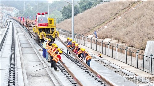 梅龙高铁铺轨按期启动,标志着项目建设进入新阶段。据介绍,为全面提高施工效率和安全管理水平,梅龙高铁铺轨施工积极投入新型多功能长钢轨牵引车、工程运输智控平台、螺栓紧固机、中频数控电正火机、焊头数控精磨机等自动化工装设备和新技术,实现了铺轨施工组织和项目管控智能化、信息化、专业化、绿色化,将大幅提升轨道铺设质量,确保后期线路的平稳运行。