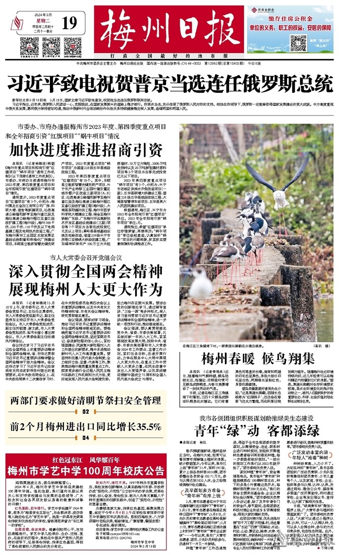 本报讯 (记者林德培)根据《梅州市重点项目和招商引资“红旗项目”“蜗牛项目”通报工作机制》(以下简称《通报工作机制》),市委办、市府办日前通报梅州市2023年度、第四季度重点项目和全年招商引资“红旗项目”“蜗牛项目”情况。