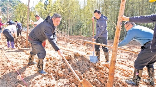 本报讯 (记者江波 通讯员宋育妮)为深入学习贯彻习近平生态文明思想,认真贯彻落实省委、市委关于推进绿美生态建设的决策部署,深入推进实施“百千万工程”。3月12日,广州中医药大学梅州医院(梅州市中医医院、梅州市田家炳医院)在党委书记郑青的带领下,前往丰顺县八乡山镇和乐村与镇、村党员干部共同开展绿美梅州“千村增绿先锋行”主题党日活动。党委副书记、副院长李平,党委委员、副院长杨睦富,党委委员、副院长谢坤清,挂职副院长李佳殷、张俭、肖光辉等22名党员、干部参加活动。