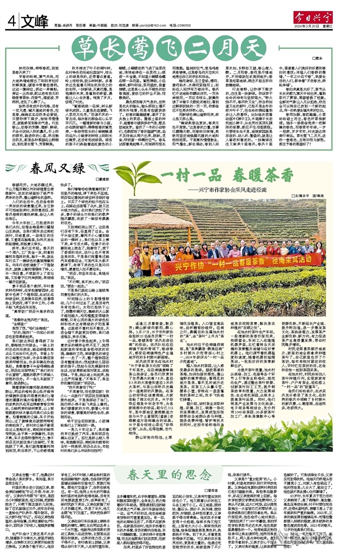 适逢三月着春装,散芬芳;满山新绿向朝阳,醉心房。3月17日,兴宁市作家协会组织25名会员开展“‘一村一品,春暖茶香’采风走进径南”的活动。采风队伍在径南镇干部的带领下,畅游春天,感受径南镇特色产业遍地开花的乡村振兴新画卷。